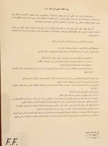 كما نص البيان في فقرته التالية على التشديد علي عودة كافة المهجرين والنازحين في الداخل والخارج، وتعويضهم مادياً ومعنوياً.