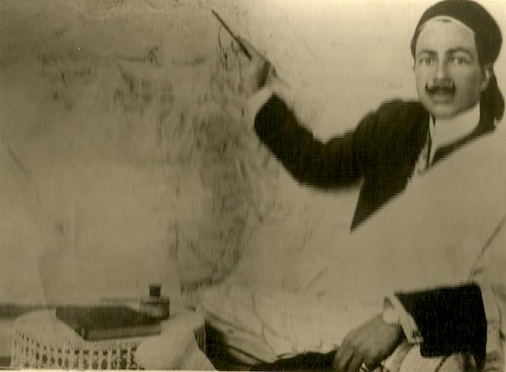 عمر فائق شنيب عام 1910 فى مكتبه بالسلوم عند ما كان مديرا له يشير بقلمه الى موقع السلوم فى الخريطة