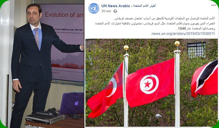 وأكد مكتب الأمم المتحدة في بيانه “نحن على اتصال بالسلطات التونسية لمعرفة أسباب توقيفه”، مشيرا إلى أن قرطاس بوصفه خبيرا مفوضا من الأمم المتحدة يتمتع بالحصانة الدبلوماسية.