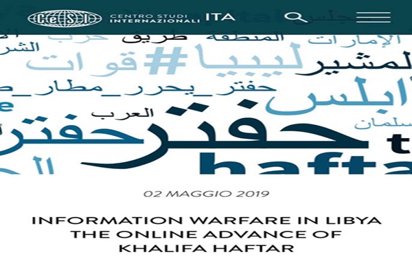 خمسة عشر الف ادراج على مواقع الانترنت، خلال الشهر الماضي، كلها تهدف الى إقناع القارىء ان “حفتر” هو محارب الاٍرهاب وموحد ليبيا ومن يعيد الاستقرار اليها.