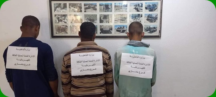 وبناء على تعليمات مدير الإدارة العامة لحماية الطاقة الكهربائية،بضرورة تكتيف البحث والتحري حول محلات بيع وشراء الخردة تمكن أعضاء الإدارة العامة لحماية الطاقة الكهربائية فرع بنغازي من خلال جولات تفتيشية قاموا بها على محل بيع الخردة بالمدينة من ضبط ثلاثة أشخاص داخل إحدى المحال حيث عثر على كمية من الاسلاك الكهربائية تخص الشركة العامة للكهرباء،وتم اتخاذ كافة الاجراءات القانونية.