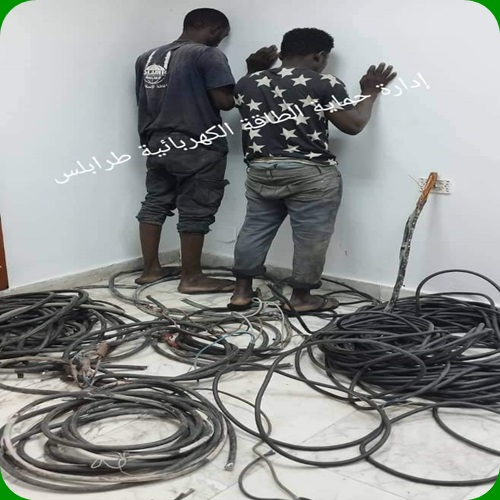 أعلنت وزارة الداخلية الليبية عبر صفحتها الرسمية على فيسبوك قيام وحدة حماية الطاقة الكهربائية التابعة لها بمداهمة محل لبيع الخردة في العاصمة طرابلس يبيع أسلاك كهربائية تخص الشركة العامة للكهرباء.