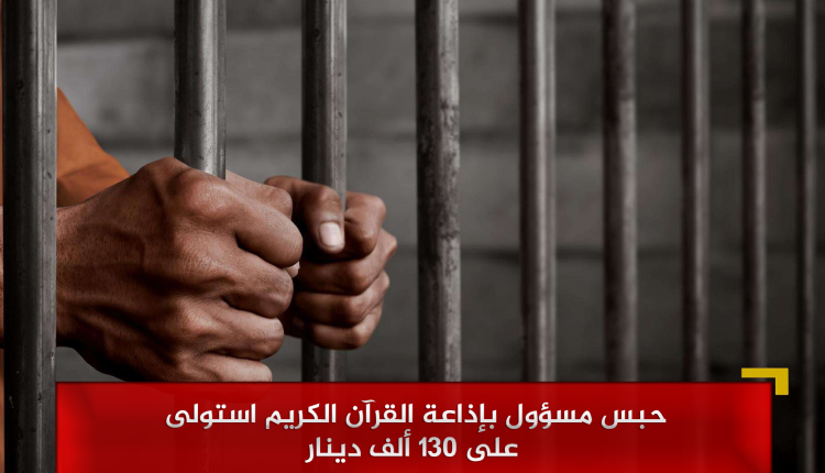 طرابلس 29 إبريل 2024 أعلن مكتب النائب، حبس مسؤول بإذاعة القرآن الكريم بتهمة الاستيلاء على مبالغ مالية.