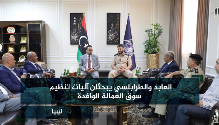 العابد والطرابلسي اتفقَا على إعداد مشروعٍ لتنظيم العمالة الوافدة إلى سوق العمل الليبي، تمهيدًا لإرسال المقترح إلى رئيس حكومة الوحدة منتهية الولاية، عبد الحميد الدبيبة.