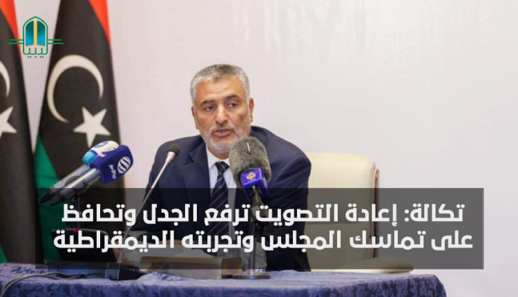 وقال تكالة في تصريح صحفي نشرة المجلس عبر صفحته الرسمية، اليوم الأربعاء، “إن إعادة التصويت ترفع الجدل وتحافظ على تماسك المجلس وتصون تجربته الديمقراطية”، مضيفًا “من يرفض لن نسمح له بتشويه أداء المجلس”.