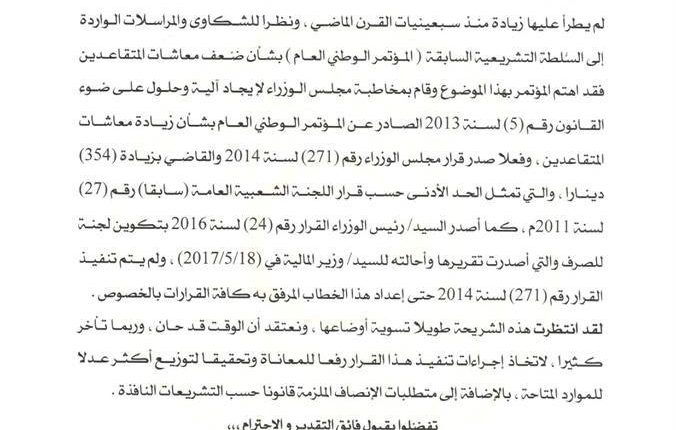 رئيس المجلس الأعلى للدولة الدكتور”عبدالرحمن السويحلي” يوجه خطاب الى “حكومة الوفاق الوطني” يطالبها فيها بضرورة اتخاذ الإجراءات اللازمة لتنفيذقرار زيادة معاشات المتقاعدينالصادر سنة 2014.