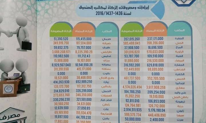 بقية المكاتب وعددها 40 لم يتجاوز إيراد أي منها المليون دينار، وبعضها مثل اجدابيا ونالوت والكفرة لم تجمع أي مبلغ من الزكاة، ومدن أخرى جمعت مبالغ محدودة جدا.