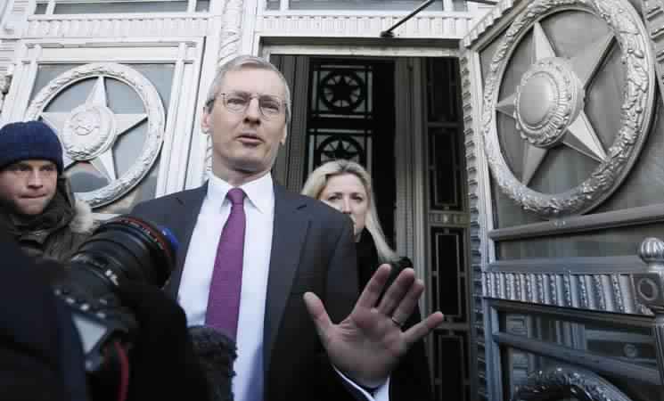 السفير البريطاني في روسيان لوري بريستو، أمام وزارة الخارجية الروسية
