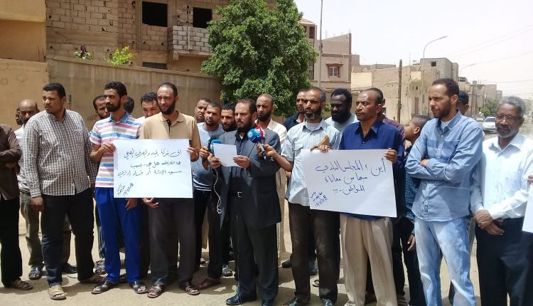 خرج عدد من نشطاء المجتمع المدني والأهالي بسبها في وقفة احتجاجية استنكارا لطفح مياه الصرف الصحي في عدة شوارع بحي المهدية وسط مدينة سبها.