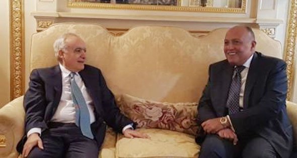 وقال شكري خلال استقباله مبعوث الأمم المتحدة غسان سلامة في القاهرة السبت أن القاهرة مستمرة بكل جدية في استضافة اجتماعات دورية من أجل توحيد المؤسسة العسكرية الليبية، بما يسهم في تحقيق الاستقرار ويدعم جهود مكافحة الإرهاب وتهريب السلاح والهجرة غير الشرعية.