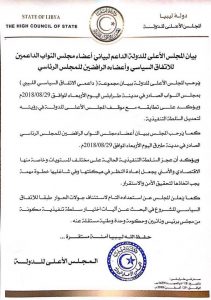 وكانت كتلة النواب الداعمين للاتفاق السياسي بمجلس النواب قد أصدرت بياناً الإربعاء الماضي، 29-08-2018، قال فيه أن المجلس الرئاسي لم يعد يمثل الاتفاق السياسي، معللاً ذلك في فشله في إدارة الأمور، مؤكداً على ضرورة استبداله بحكومة تنال الثقة من مجلس النواب.
