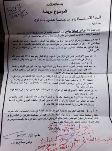 تقدم عدد من المواطنين والمشايخ في مدينة بنغازي بشكوى الى رئيس نيابة جنوب بنغازي بتاريخ 15-07-2019م ضد مدير مكتب أوقاف بنغازي “المدعو عاطف عبدالواحد العبيدي” لتستره على اختلاس وسرقة أموال الزكاة قُدمت باسم الشيخ “يونس صالح يونس” وهو منتمي لنفس فكر المشتكى عليه الفكر السلفي الوهابي كذلك ويعمل محفظ للقرآن الكريم في مركز أم المؤمنين (بوقرين) وأمين صندوق جمع التبرعات وعضو لجنة في المسجد.