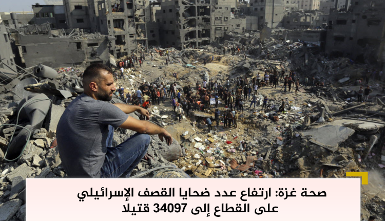 صحة غزة: ارتفاع عدد ضحايا القصف الإسرائيلي على القطاع إلى 34097 قتيلا