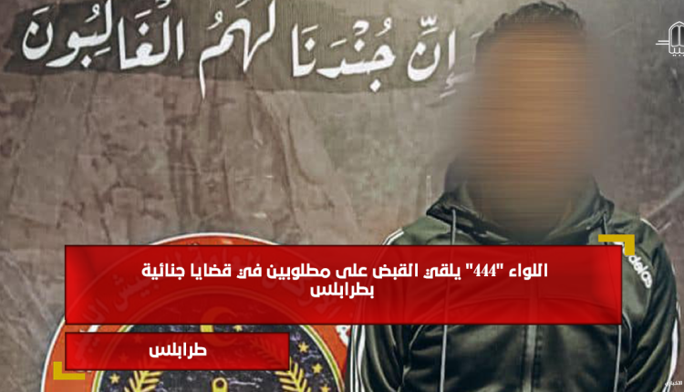 وذكر اللواء 444- في بيان – أن أحد المطلوبين في قضايا القتل والتهريب، متهم بتفجير نقطة استيقاف لضبط المهربين وسط الصحراء تستخدمه مفارز اللواء، بالإضافة إلى القبض على تجار مخدرات في أماكن مختلفة في العاصمة طرابلس.