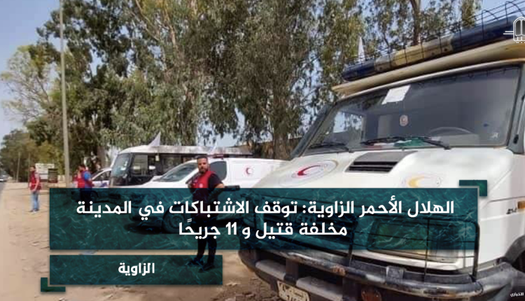 وقال الهلال الأحمر فرع الزاوية: ” تنتظر بفارغ الصبر إعلان الهدنة من قِبل أطراف النزاع حتى تتمكن من تقديم المساعدة العاجلة للعائلات العالقة” مشدّدًا على أنَ ” فرق الطوارئ والمدنيين وسيارات الإسعاف والأطقم الطبية والطبية المساعدة والأماكن العامة ومنازل المواطنين ليست هدفًا” على حد تعبيره.
